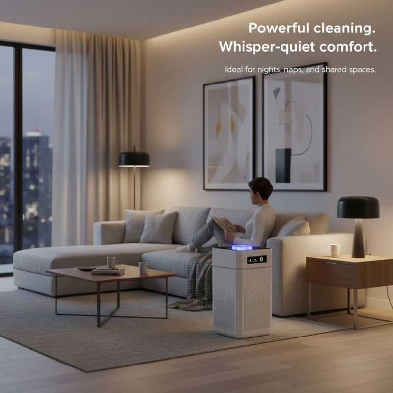 It's designed for whisper-quiet operation and is well-suited for bedrooms, nurseries, and living rooms. On sleep mode, it runs as low as 22 dB—about as quiet as rustling leaves or a soft whisper—so it's comfortable to run all night without disrupting sleep.